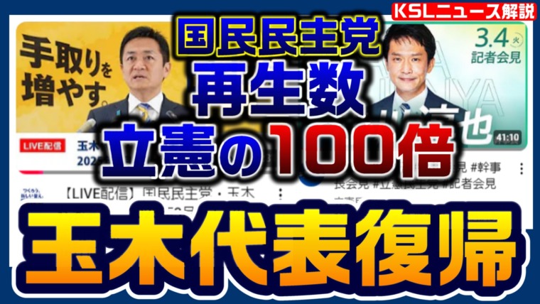 玉木代表の復帰会見、再生数で立憲を100倍圧倒!なぜこれほどの差が?【KSLチャンネル】