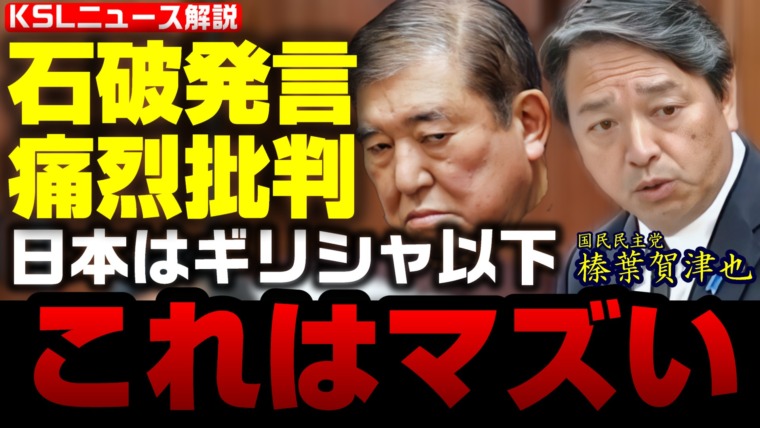 石破発言「日本はギリシャ以下」国民民主党・榛葉賀津也が痛烈批判「これはマズいよ、えらいことになりますよ 」【KSLチャンネル】