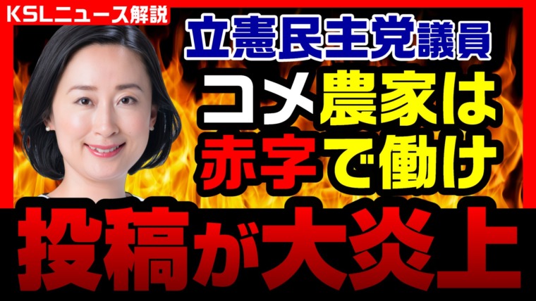 【大炎上】コメ農家は赤字で働け?立憲・田島麻衣子「いやいや、米5キロ2000円台だ」無慈悲な投稿に批判殺到【KSLチャンネル】