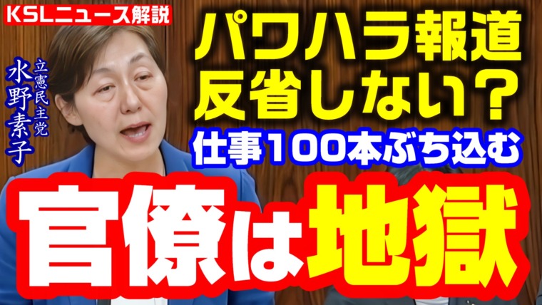 辞める前に最後っ屁のパワハラ?立憲・水野素子さんが会期末に官僚を地獄に突き落とす計画を発表「質問主意書100本提出する」【KSLチャンネル】