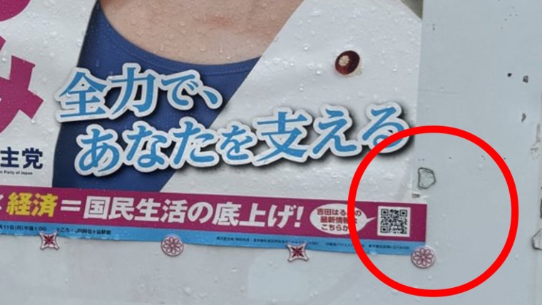 門さんの投稿では、両面テープでしっかりと貼られていたということですが、一方で政治活動ポスターで使われる「ワッポン」という特殊なシールも確認できます。画像をよく見るとワッポンが向かって右側だけは確認できず、その右側の部分は切り取られているように見えます。