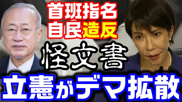 内容は、高市早苗総裁の首班指名に自民党議員26名が造反して、公明党の斉藤代表が総理になるというシナリオです。有田議員は永田町に流れる怪文書として公開しましたが、名前を挙げられた自民党議員らが一様にこれを否定する事態となっています。